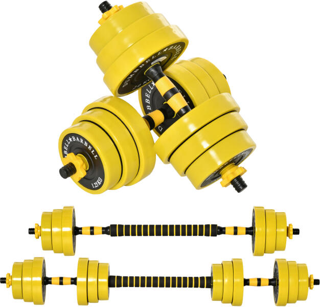 HOMCOM 2 az 1-ben moduláris súlyzók és rudak 20 kg-os készlet 20 KG sárga
